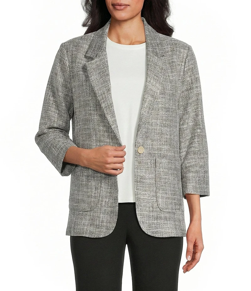 Investments Scratch Pattern 3/4 Ruched Sleeve Notch Lapel Lined Button Front Blazer in Chattanooga, TN
