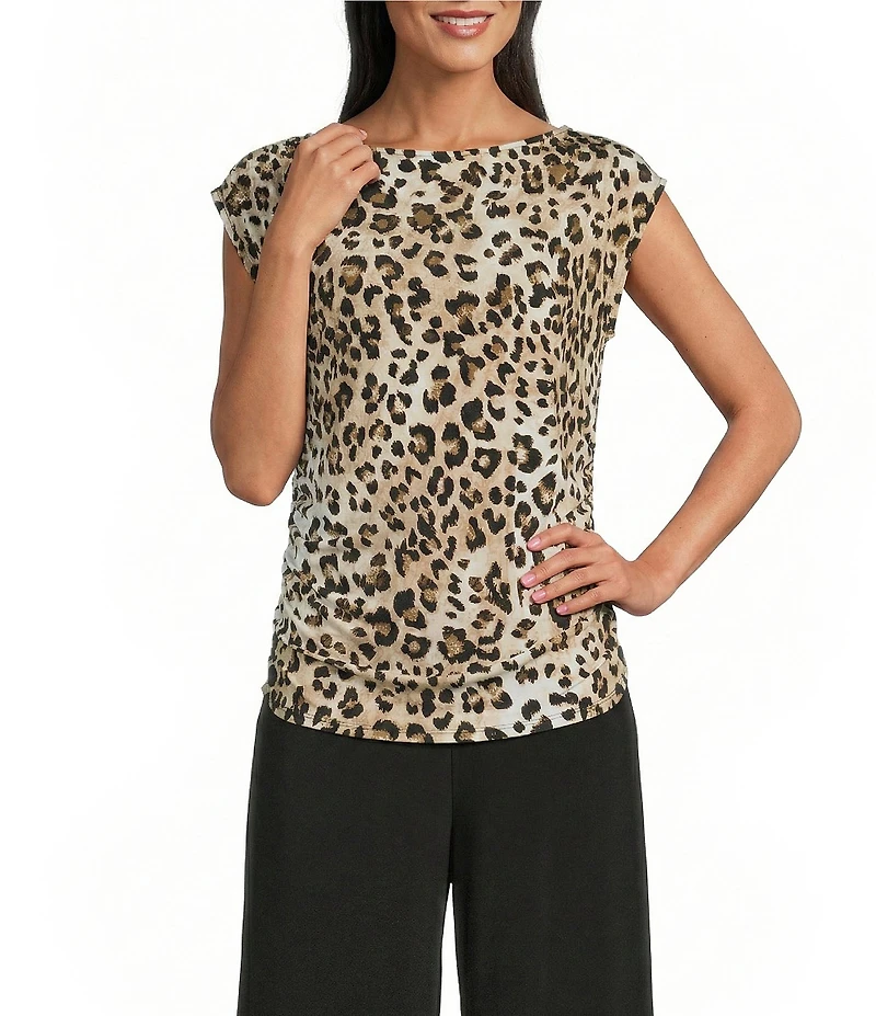 Investments Soft Separates Light Leopard Print Crew Neck Ruched Sleeveless Top