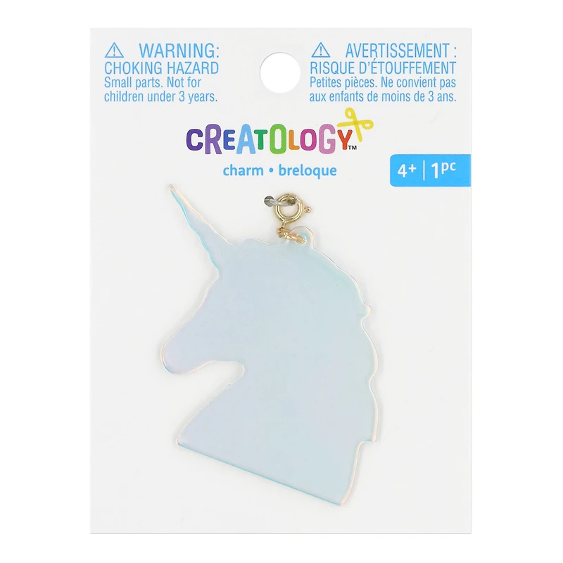 This iridescent unicorn charm is perfect for lending a fun touch to accessories!Details:Iridescent1.93" (4.9 cm)Acrylic, copper, and grassFor ages 4 ad up