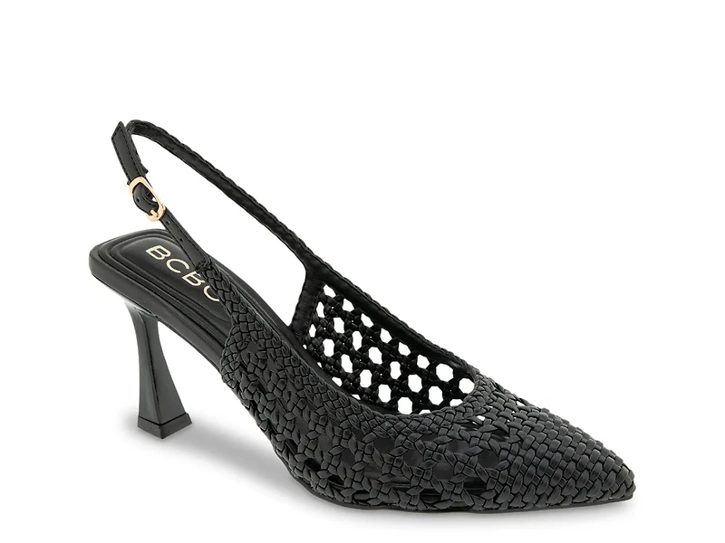 The Issa pump from BCBG brings a fresh edge to your wardrobe with its woven silhouette and pointed toe that commands attention. With a flared heel, textured upper, and adjustable slingback strap, this pump transitions effortlessly from daytime events to evening plans, adding a fashion-forward touch to any look.