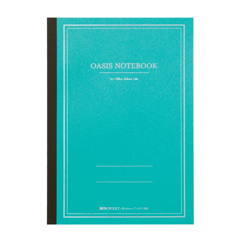 The ProFolio Oasis Notebook simplifies your search for the perfect notebook - look no further. It is well-designed, affordable and practical. The proprietary paper pattern features a combination of grid, line and dots, an optimal pattern for handwriting, drawing perfect straight lines, developing charts and rapid journaling.Details: Wintergreen cover 7" x 9.9" (B5) 80 sheets No bleed-through pages Grid, line and dot pages Machine stitched spine Made in Japan