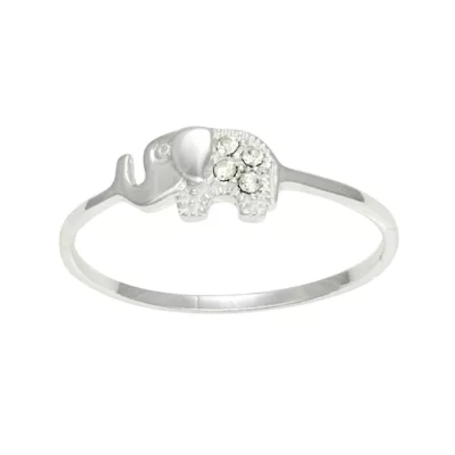 Itsy Bitsy Elephant Womens Crystal Sterling Silver Delicate Band