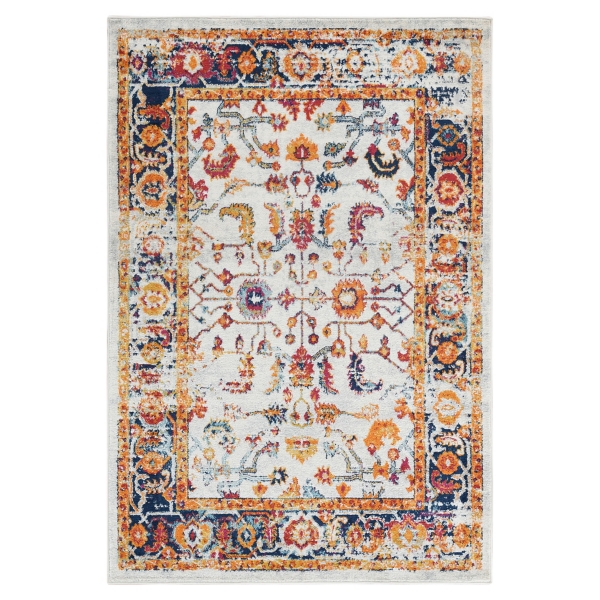 With deep, bold colors, this Ivory Alexandria Farmhouse Floral Area Rug elevate the look of any room. Its stunning design will update any farmhouse interior! Rug measures 2 ft. in length x 3 ft. in height Crafted of polypropylene Power-loomed construction Low pile Traditional floral pattern Hues of ivory, red, yellow, and blue Rug pad not included Care: Vacuum regularly. Blot spills with a mild detergent and clean cloth. Not safe for outdoor use. This item is available at Kirklands.com only, not available in stores. Please note: this item cannot be shipped to APO/FPO addresses.