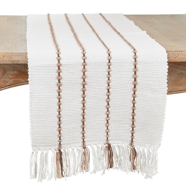Ivory Striped Fringe Table Runner