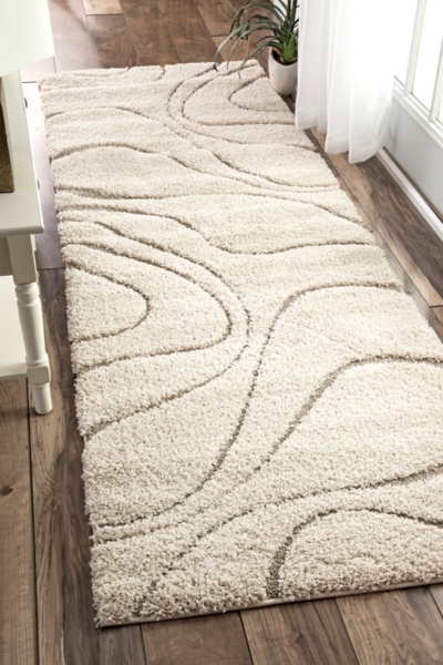 This Ivory Swirl Carolyn Runner will look fantastic in any room or hallway! The soft hues and texture makes this runner the cozy addition every home needs. Runner measures 2 ft. 6 in. in length x 8 ft. in height Crafted of 100% polypropylene Machine made construction Cut loop texture with swirl design Hues of ivory and tan Rug pad not included Care: Vacuum regularly. Blot spills with a mild detergent and clean cloth. Safe for outdoor use. This item is available at Kirklands.com only, not available in stores. Please note: this item cannot be shipped to APO/FPO addresses.