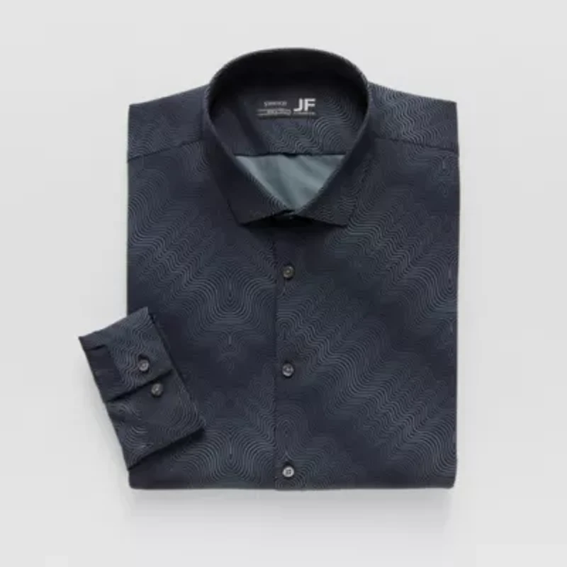 Made from a wrinkle-free woven fabric for easy care and maintenance, this J. Ferrar men's long-sleeve dress shirt is a stylish essential featuring a unique ripple-print to keep you looking polished from morning to night. It features a classic-fit, cuffed sleeves and a button-down front. Wear it with pants or jeans.