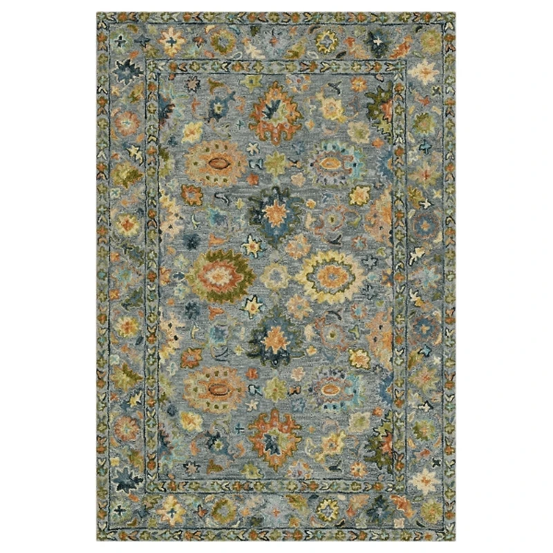 Fill your home with beauty and style by rolling out our Jackson Gray Hand-Tufted Area Rug! This soft and stunning area rug will add dimension to any room. Rug measures 5 ft. in length x 7 ft. 6 in. in height Crafted of 75% New Zealand wool and 25% viscose Traditional floral medallion design Hand-tufted in India Hues of gray, green, brown, yellow, and blue Non-skid backing Rug pad not included Care: Vacuum regularly. Blot spills with a mild detergent and clean cloth. Not safe for outdoor use. This item is available at Kirklands.com only, not available in stores. Please note: this item cannot be shipped to APO/FPO addresses.