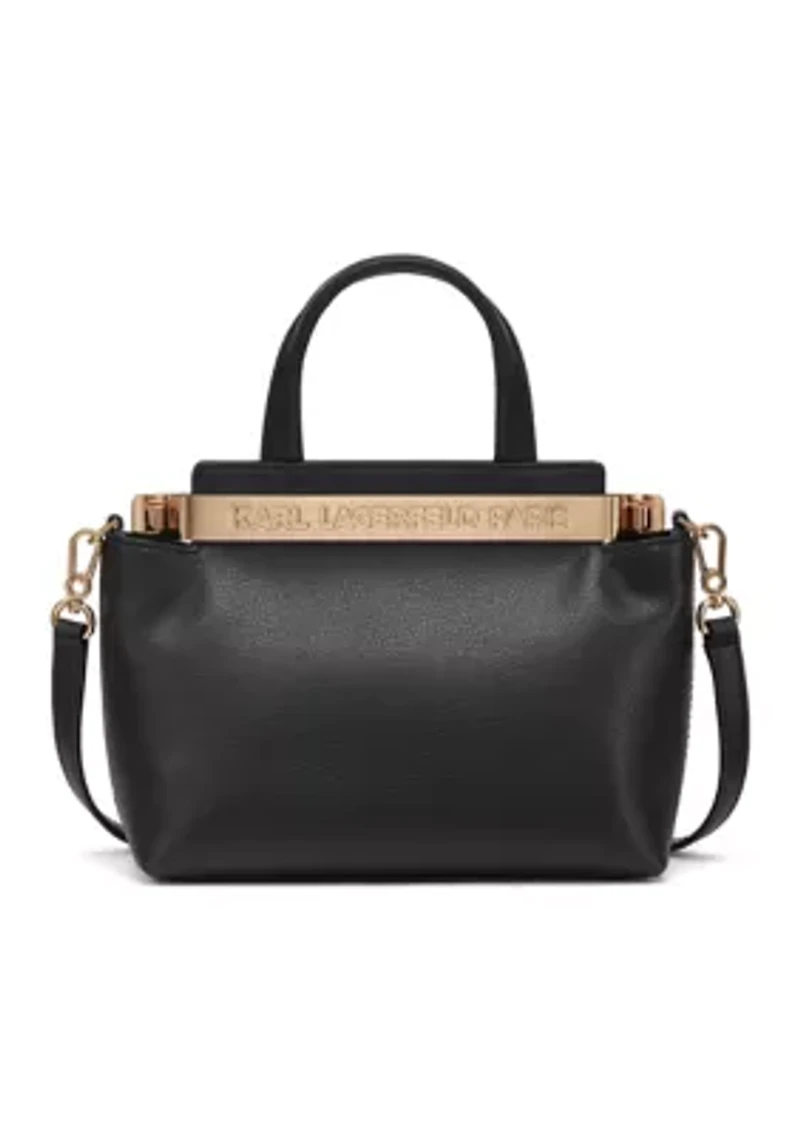 Crafted from supple leather, the Jacqueline crossbody is emboldened by KARL LAGERFELD PARIS logo branding over a luxurious leather build. Top handle with 2" drop Crossbody strap Interior: 2 slip pockets, 2 card slots Imported Product Specifications 7" x 8" x 3" Material & Care Leather trim Leather Spot clean only