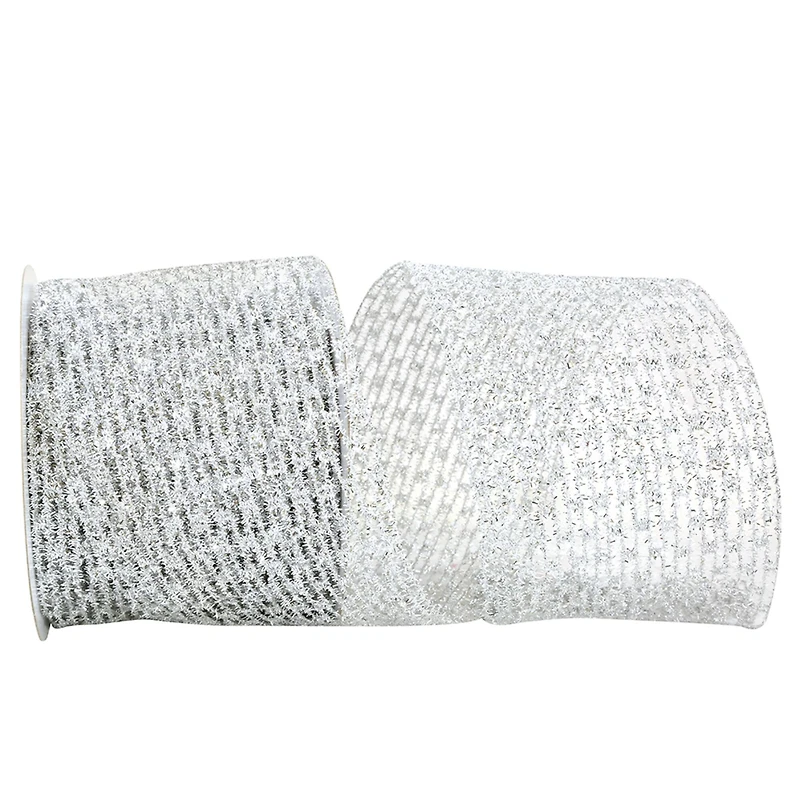 This beautiful open weave metallic mesh will transform your floral or decorating projects from pretty to exquisite. Wired edges will ensure your bows keep their shape.Details:Silver4" x 10yd.Metallic MeshWired edgeFlex Net Stretch80% Polyester 20% Nylon