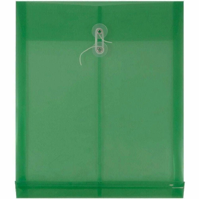 JAM Paper 9.75" x 13" Green Plastic Button String Open End Envelopes, 6ct.