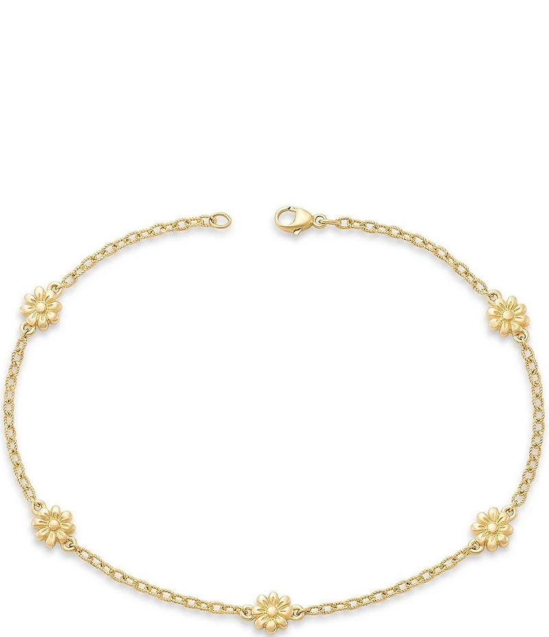The Margarita Collection has been a longtime customer favorite. An addition to this beloved collection, our flower anklet features five whimsical daises around a faceted chain. Available in both 14K gold and sterling silver, this delicate floral anklet is a sweet reminder of carefree days and the joy found in nature. Beautiful when worn on its own or layered, this design comes in three sizes so you can get an ideal fit. Pair with the matching Margarita Necklace or Bracelet. From James Avery, this anklet features:  14k gold Lobster clasp closure Available in 9, 10, and 12 inches Crafted in America using the world's finest materials.