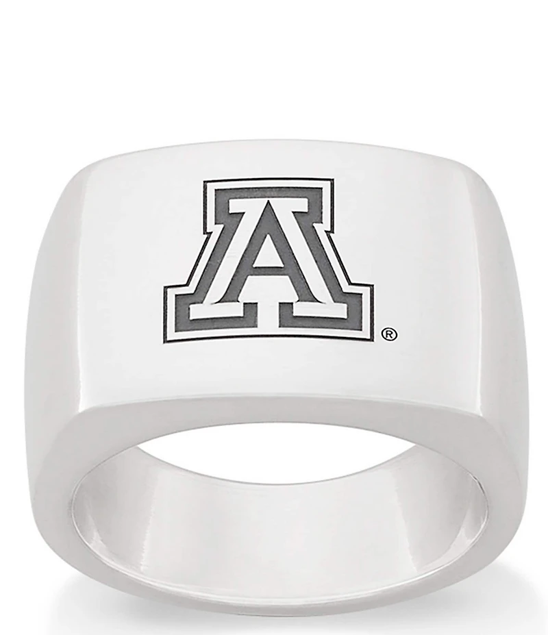 We brought back our Engravable Aventura Ring and gave it a little university pride. Part of our College Collection, this officially licensed University of Arizona Signet Ring features the Arizona logo engraved in sterling silver for a clean and classic look. Made for fans who show up season after season, it s designed to be worn long after graduation. Engrave the inside of the band with your name, graduation year, or initials to make it extra personal. Product Specifications: Sterling Silver This is an officially licensed collegiate product and the name or logo featured on the item is a registered trademark of the university. From James Avery, this ring features: Sterling silver Approx. 9/16" L x 13/16" W Crafted in America using the world's finest materials.