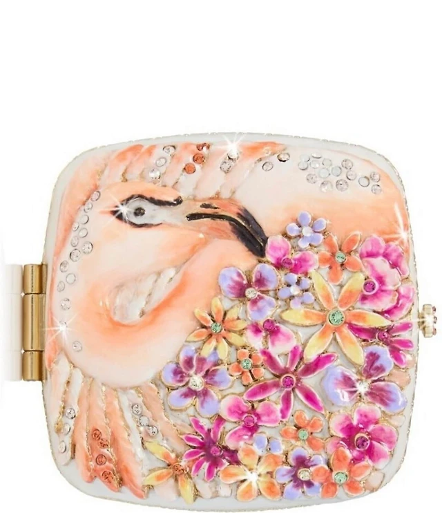 Jay Strongwater Lily Floral Flamingo Double-Sided Compact Mirror