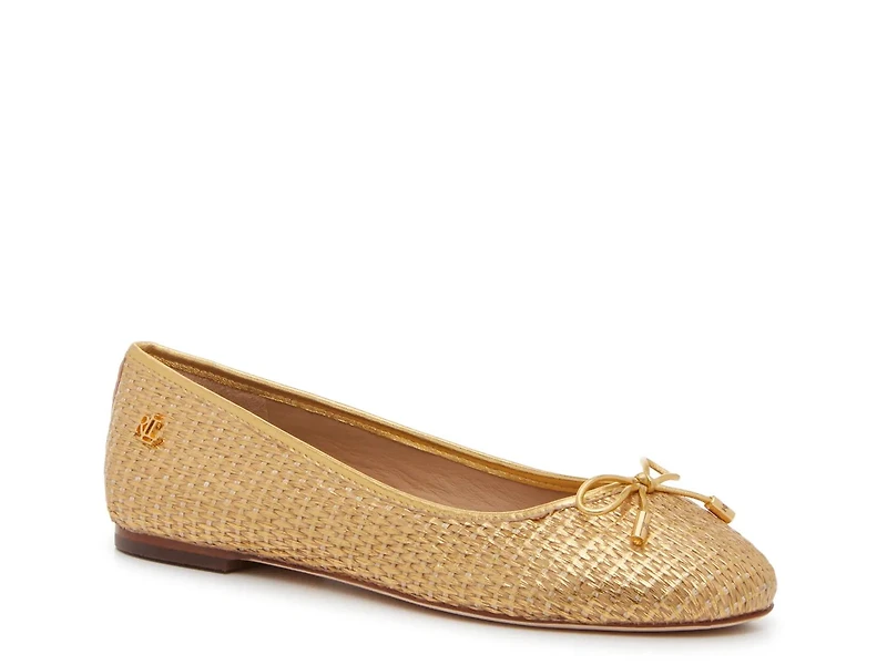 Highlight a casual look or finish off a formal one with the Jayna ballet flat from Lauren Ralph Lauren. Crafted from raffia and leather, this pair sports a versatile silhouette offset by a charming bow detail for added flair.