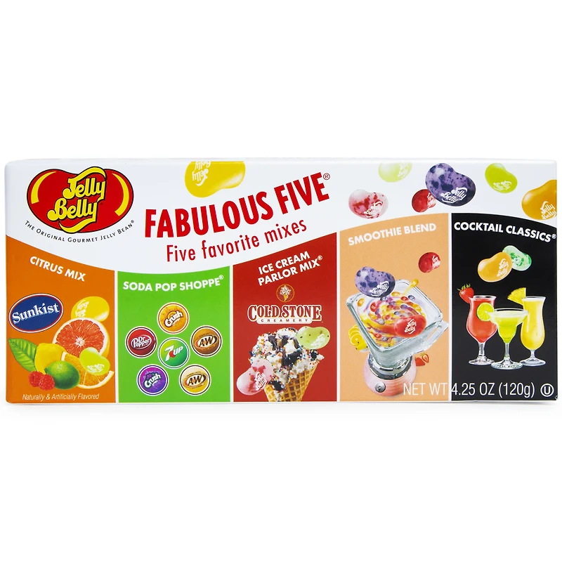 - jelly belly® jelly beans fabulous five® favorite mixes is like a greatest hits album – every flavor rocks!
