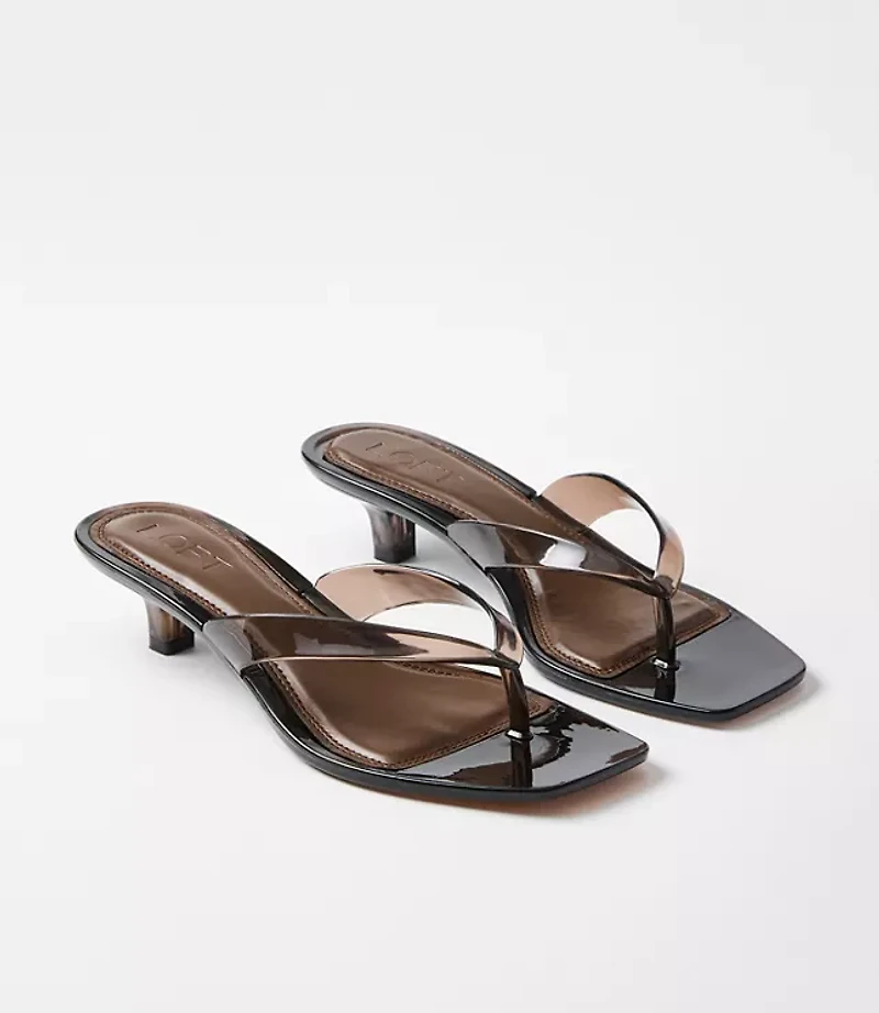 From its sleek straps to its extra comfy padded footbed, we're totally ready for this jelly pair. 1/2"heel., Imported:, Fabrication: Jelly Upper Loft Kitten Heel Thong Sandals Size 6 Cocoa Bean Women's by Loft Size Regular - 6 Cocoa Bean Women's High, Heels & Pumps Footwear Jelly Upper