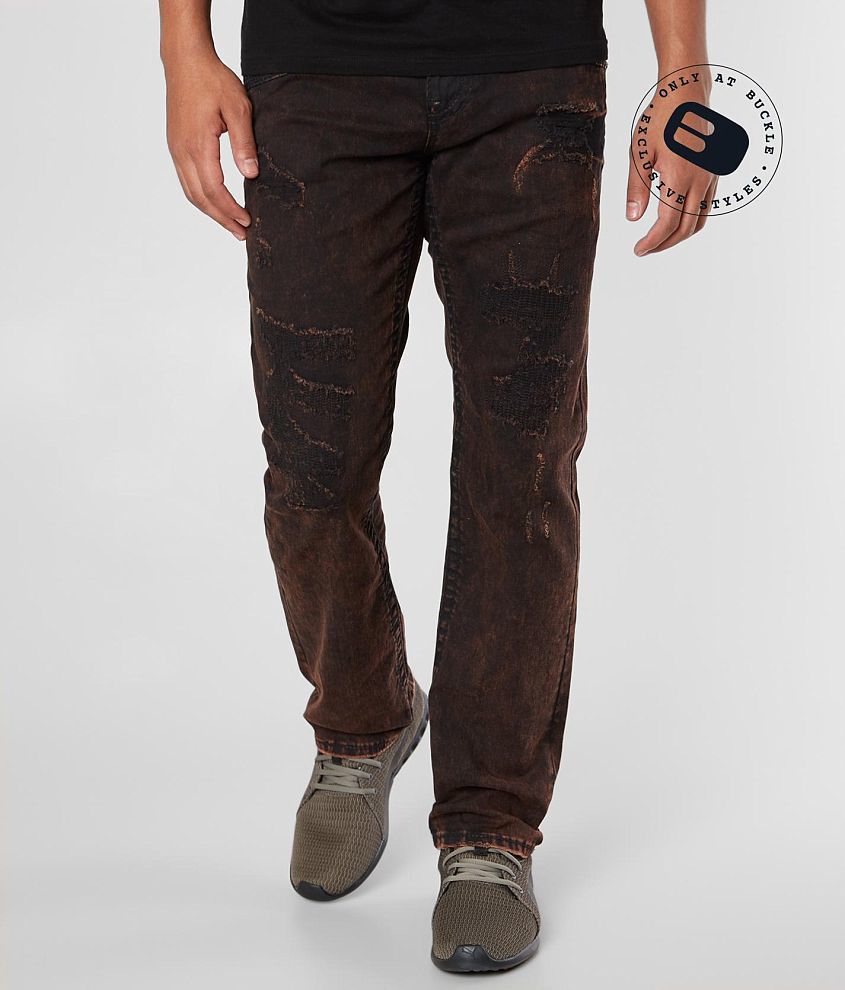 Slim fit jean Comfort stretch fabric Straight from knee to hem Low rise, 16" bottom opening Pieced back pockets Grinding, dremmeling, destruction with fill yarn and repair stitch details Zip fly Shoe sku 949288 Model Info: Height: 6'0" | Chest: 35" | Waist: 34 1/2" | Hip: 41" | Wearing Size: 32x32