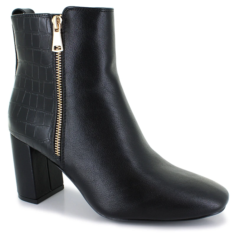 Blending style and comfort, the Jessica Cline Adeline dress boot is a versatile staple for your wardrobe. Its sleek, textured faux-leather upper offers a sophisticated look. The boot is designed for easy wear with a side zipper accent, an inner zipper closure, and a convenient back pull-tab. A cushioned insole provides lasting comfort, while a durable synthetic outsole ensures steady footing wherever you go.