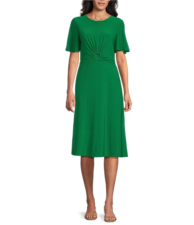 Jessica Howard Petite Size Short Sleeve Novelty Hardware Midi Dress