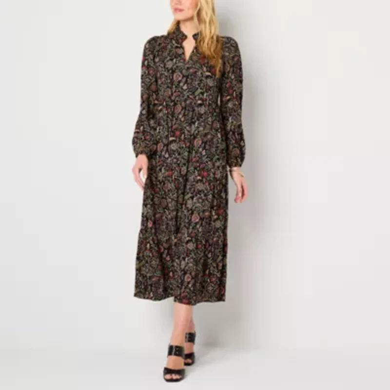 Jessica Howard Womens Long Sleeve Midi Paisley Shift Dress