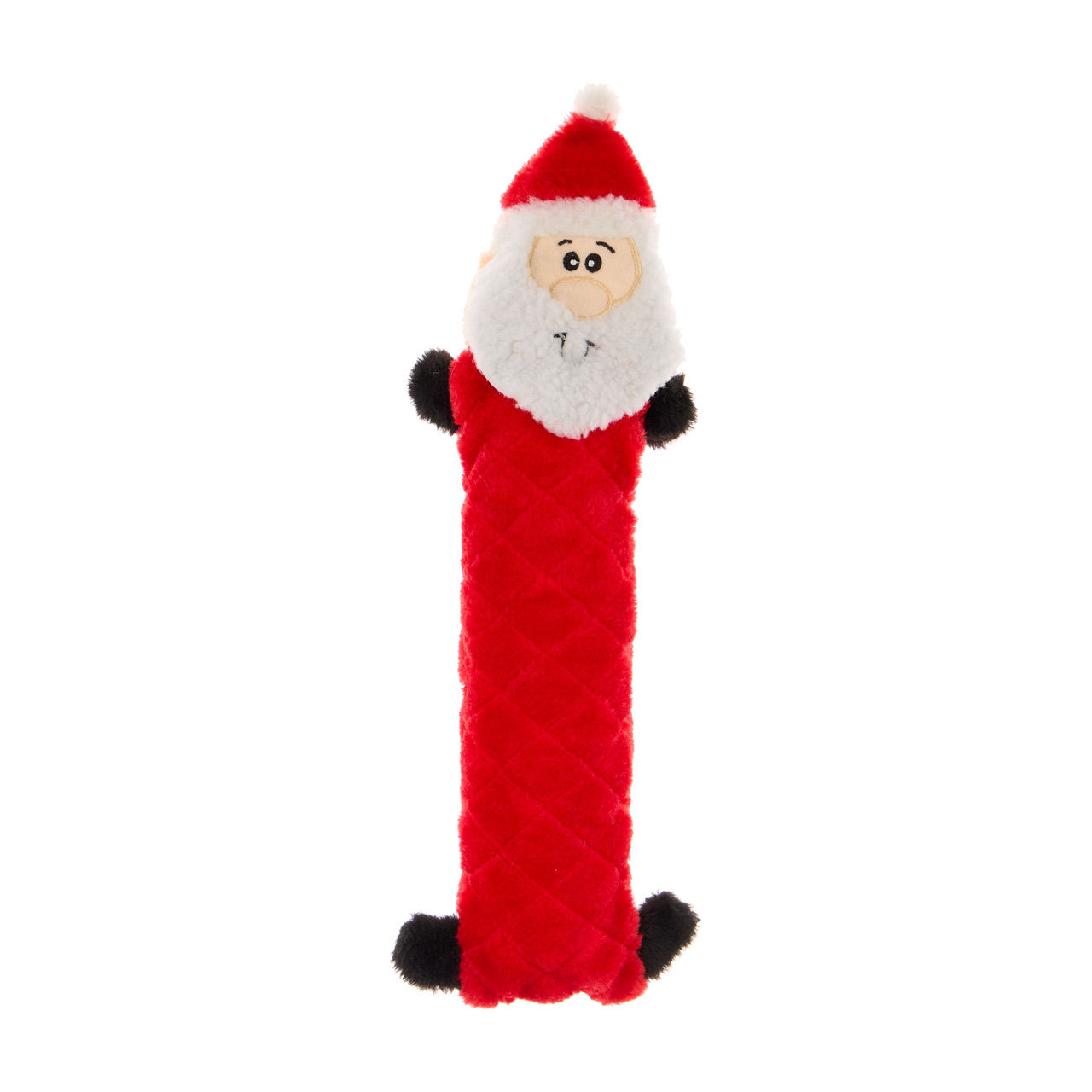 Crafted in the shape of Santa Claus, this toy features a plush, red quilted body and a soft, fuzzy white beard that is perfect for chewing and cuddling. The bright colors and charming design make it an attractive addition to your pet's toy collection.