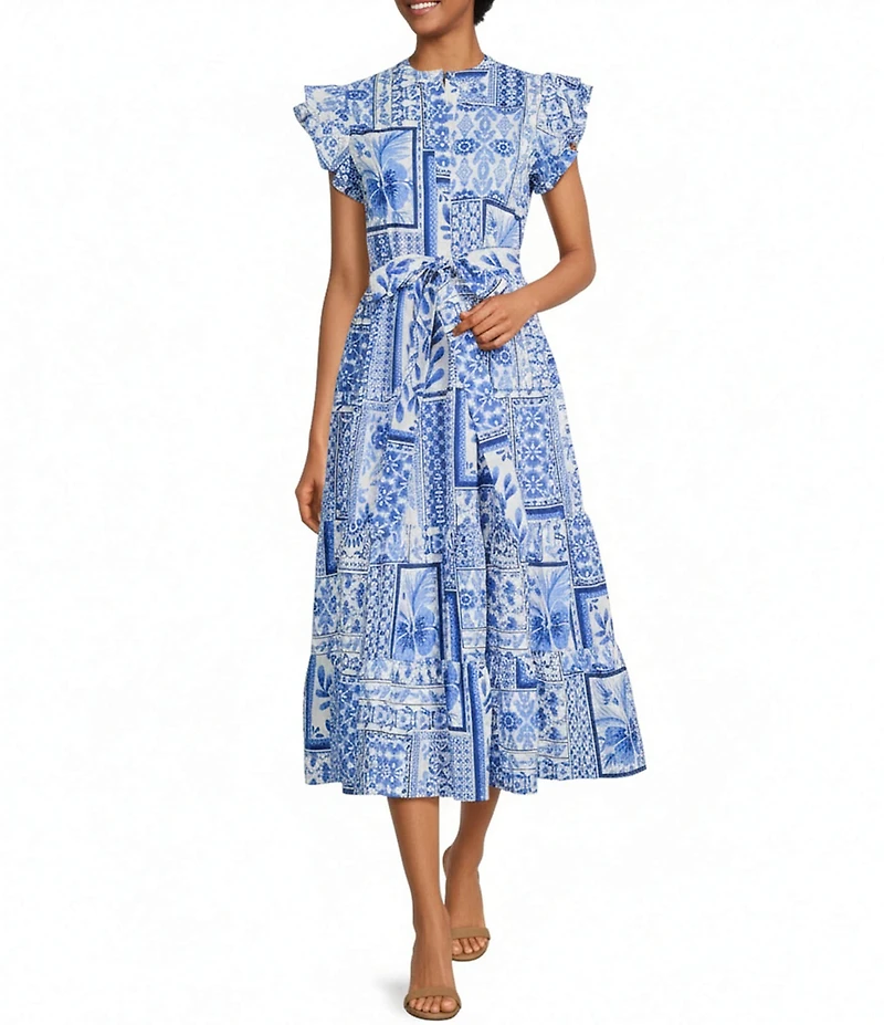 From J. Marie, this dress features: Cotton Tiered Ruffle sleeves Lined Pockets Detachable/adjustable tie waist band Pullover construction  Midi length Approx. 49" length Dry clean only  Imported.