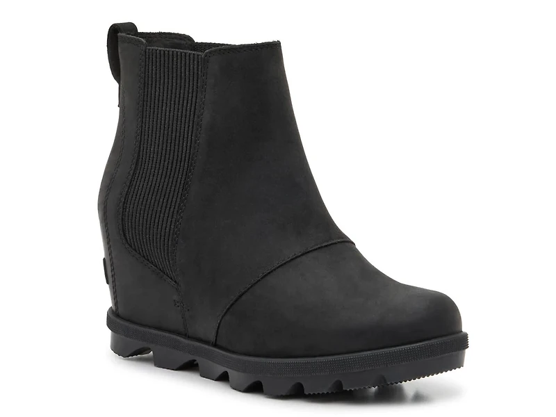 Stay stylish even as the temperatures drop in the Joan Rhapsody wedge snow boot from Sorel. This bootie features a Chelsea-inspired silhouette with a rugged traction sole to keep you sturdy on snowy surfaces.