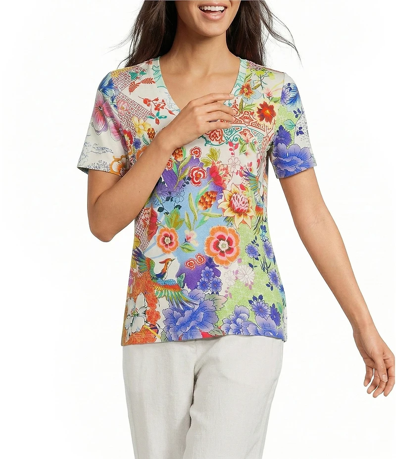 JOHNNY WAS The Janie Favorite Mcdreamer Print V-Neck Short Sleeve Tee in Chattanooga, TN