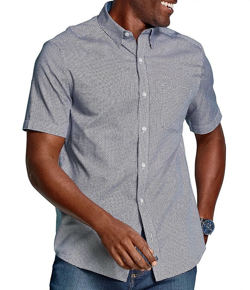 From Johnston & Murphy, this shirt features: Mini floral print Button-down collar Short sleeves Button-front closure Pocket on the left side of chest Cotton/viscose Machine wash/tumble dry Imported.