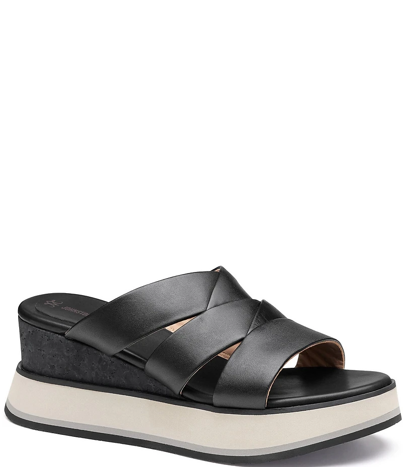 From Johnston & Murphy, the Women's Colleen Metallic Triple-Band Slide Sandals feature: Metallic sheepskin leather upper Leather lining Lightweight TRUFOAM® footbed provides ultra cushioning for all-day comfort Lightweight, EVA midsole Synthetic welt Rubber outsole Approx. 1.5" platform height Approx. 2.5" wedge height Imported.