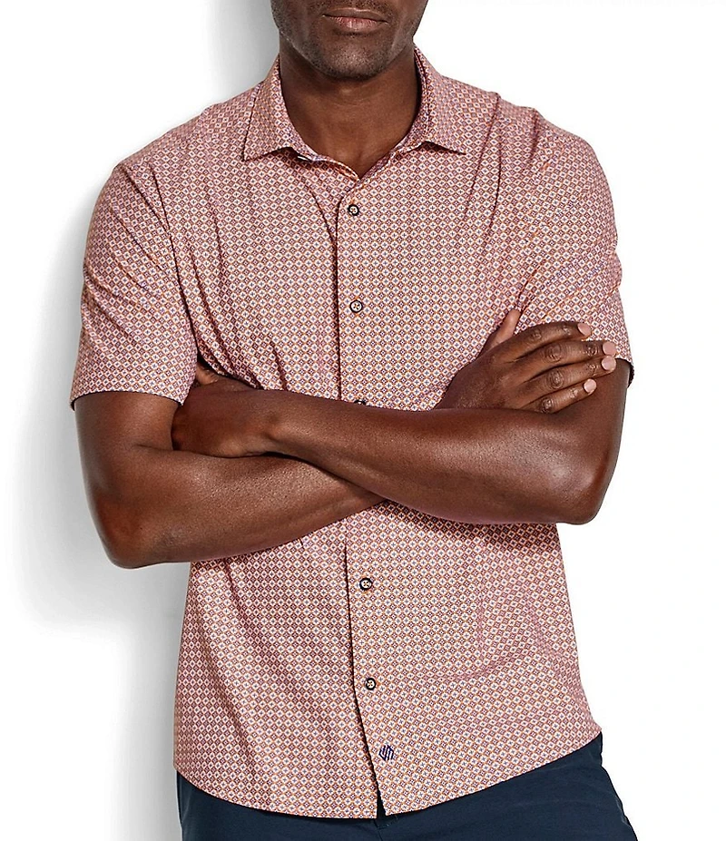 Johnston & Murphy XC+ Motion Grid Print Short Sleeve Woven Shirt