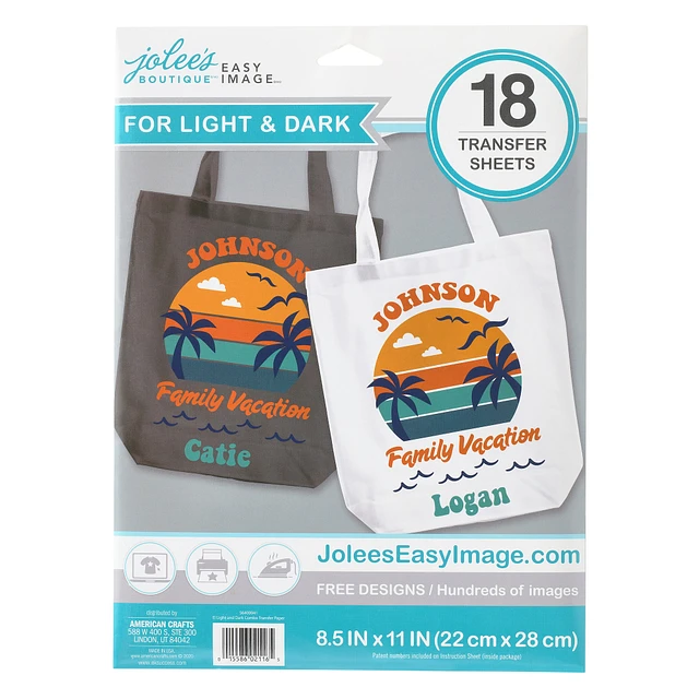 Jolee's Boutique® Easy Image® Light & Dark Fabrics Iron-On Transfer Sheets, 18ct.