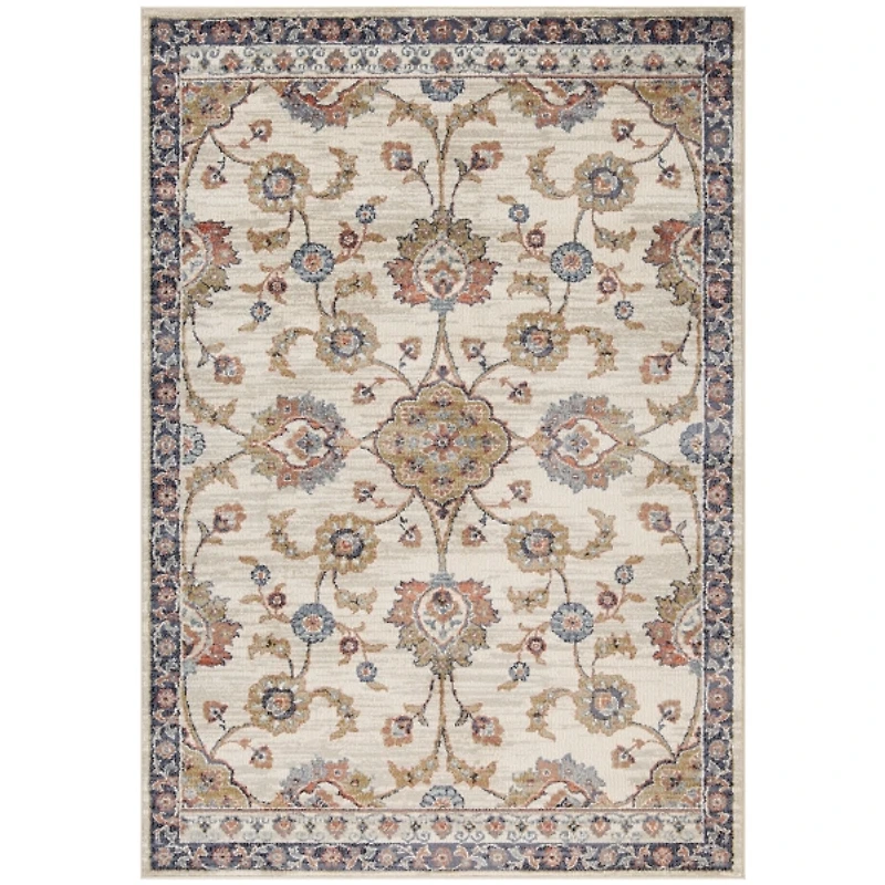 Give your floor an elegant accent with the Jordan Ivory Runner! Its floral pattern and neutral colors make it perfect for any modern living space! Rug measures 2 ft. 7 in. in length x 10 ft. in height Crafted of 100% polypropylene Stain-resistant material Power-loomed construction Features a floral pattern Hues of ivory, blue, tan, and red Rug pad not included Care: Vacuum regularly. Blot spills with a mild detergent and clean cloth. Not safe for outdoor use. This item is available at Kirklands.com only, not available in stores. Please note: this item cannot be shipped to APO/FPO addresses.