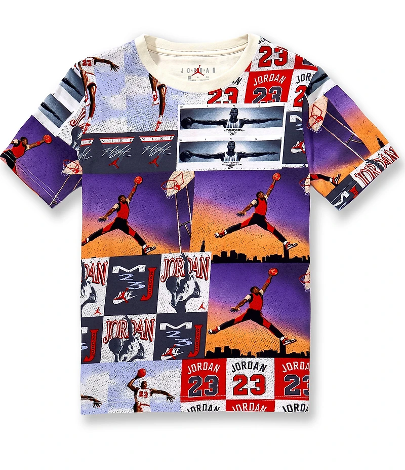 From Jordan, this t-shirt features: Soft ribbed crew neck collar Short sleeves Graphic prints on the front  Pullover construction Cotton Machine wash/tumble dry Imported.