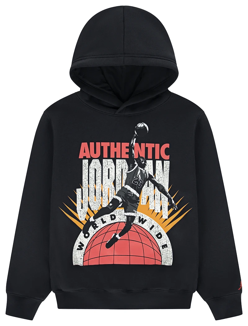 The Jordan Authentic Pull Over Hoodie brings together cozy warmth and iconic style, making it the perfect top layer for your active boys. Crafted with soft fleece fabric, this hoodie keeps your kids snug without feeling bulky. The roomy hood adds extra comfort (and cool points), while the bold chest graphic brings that unmistakable Jordan edge. Let your boys stay comfy with a look that stands out in the Jordan Authentic Pull Over Hoodie. Ribbed cuffs and hem retain the shape. Long sleeves provide warm coverage. 60% cotton/40% polyester. Imported.