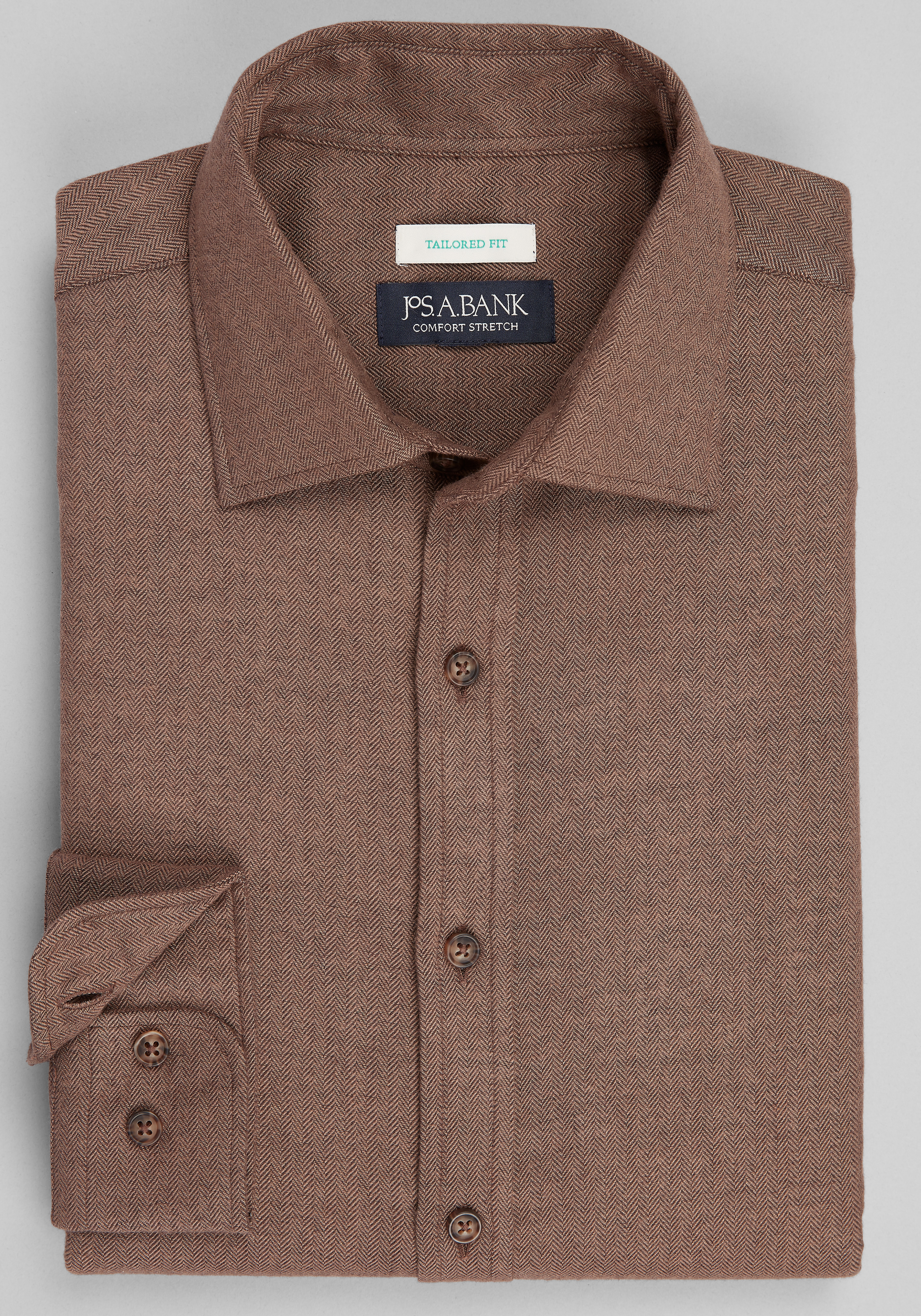 Jos. A Bank Tailored Fit Herringbone Spread Collar Flannel SportshirtJos. A Bank Tailored Fit Herringbone Spread Collar Flannel Sportshirt