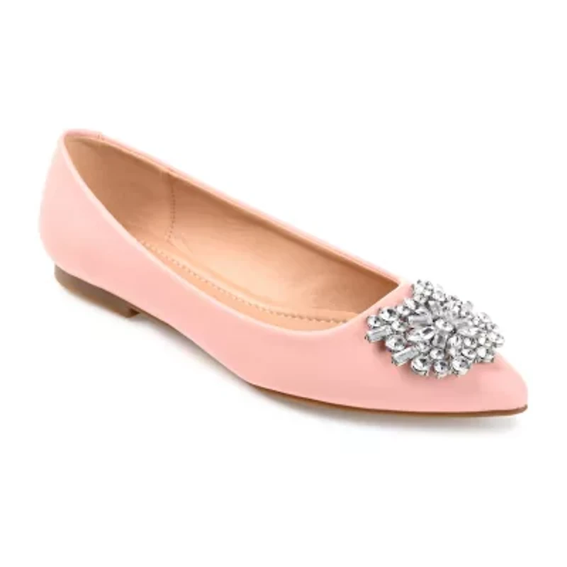 Step into elegant style with the Renzo flat by Journee Collection. These flats feature jeweled clusters on a pointed toe style which compliments the sleek silhouette. Padded insoles create a comfortable fit to complete the design.