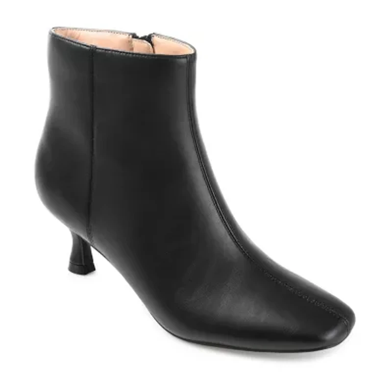 The kelssa booties by journee collection are so versatile they match everything from flared jeans to pencil skirts. These retro-chic booties feature a subtle zipper entry and square-toe design that adds a touch of sophistication to your look. To keep your feet comfortable all day long, these wide-width booties come with a 4 mm tru comfort foam™ insole and soft vegan leather construction.