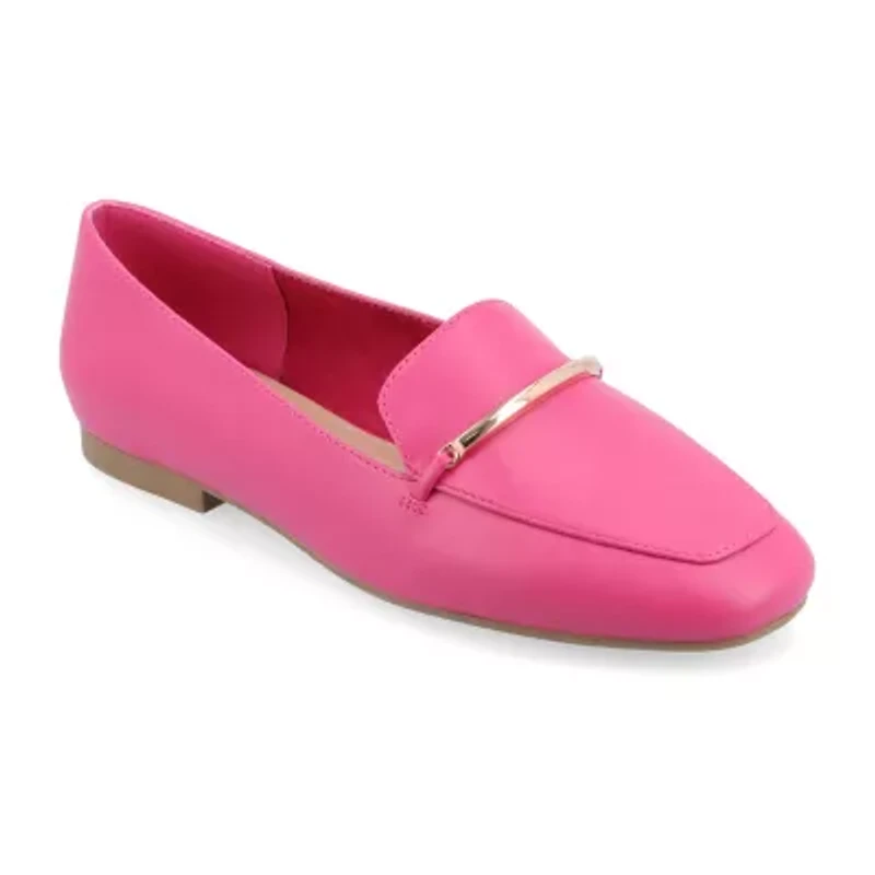 A laid-back loafer that's dressed-up too, the wrenn by Journee Collection. The slip-on loafer flat is topped with a hardware detail and a notched topline for a fresh look. Vegan leather material adds a soft, luscious look and a 4 mm tru comfort foam™ footbed keeps you on your feet with ease. At Journee Collection, our flat styles will have you looking just as professional as the boss at work to having the cutest shoes when you go out for the night. Also available in wide width.