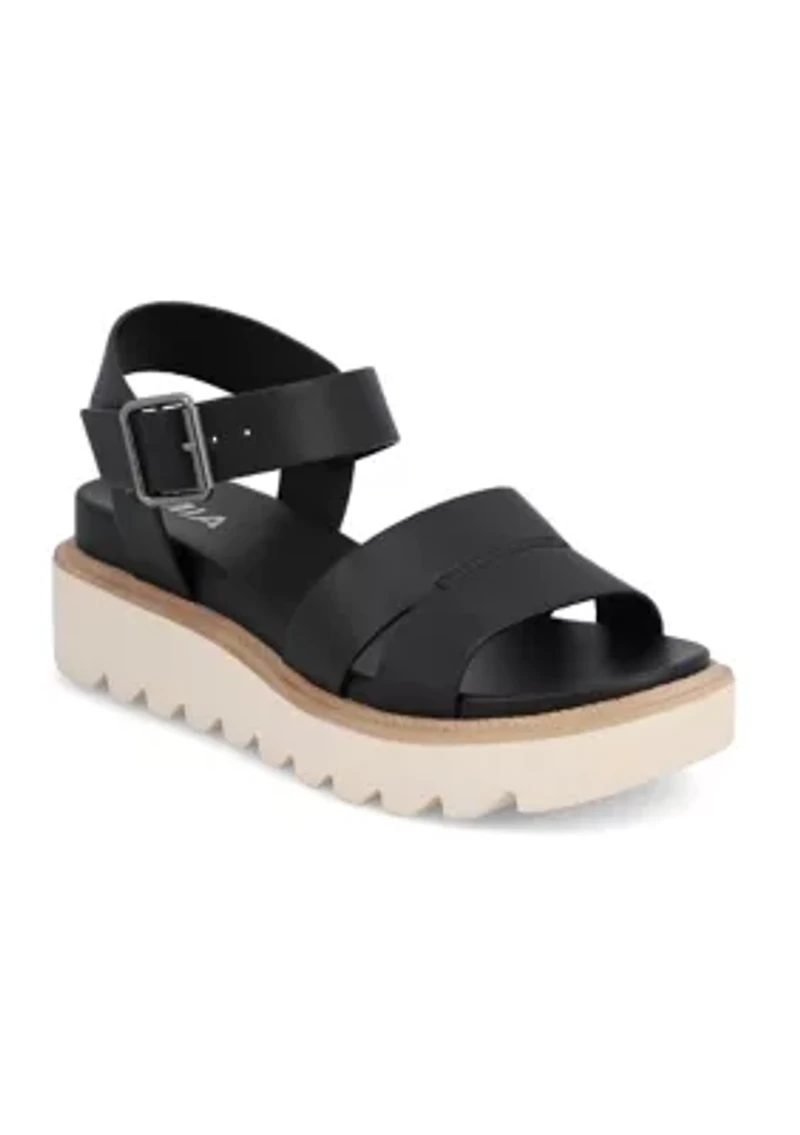 Crafted from vegan leather, these sandals from MIA are designed for everyday wear. Featuring two upper straps, an ankle strap with a silver buckle closure and a cushioned insole for all-day comfort. The elevated athletic rubber sole adds a touch of style to these versatile sandals. Buckle closure Comfort technology Imported Product Specifications 1.6" heel Medium width Material Faux leather