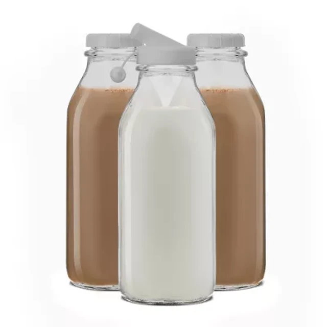 Joyjolt Glass Milk Bottles With Silicone Pour Lid Beverage Dispenser