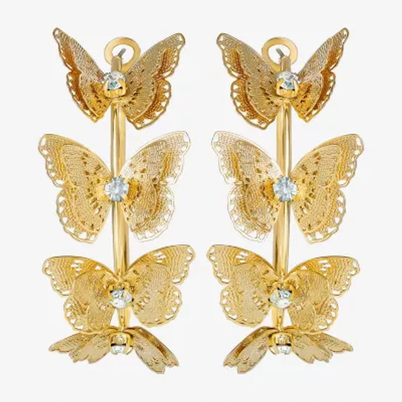 JS Jessica Simpson Gold Tone Womens Glass 48mm Butterfly Hoop Earrings