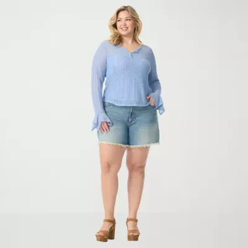JS Jessica Simpson Womens Plus Split Crew Neck Long Sleeve Lace Blouse