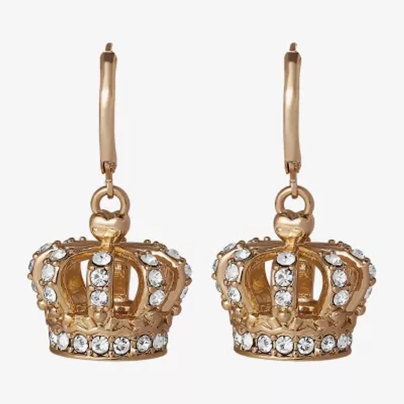 Juicy By Juicy Couture Gold Tone Womens Crystal Crown Drop Earrings