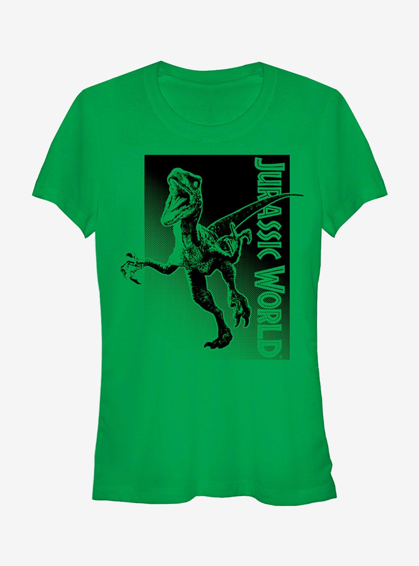 This green Jurassic World tee is Owen Grady approved. Blue the Velociraptor is ready to attack and defend!