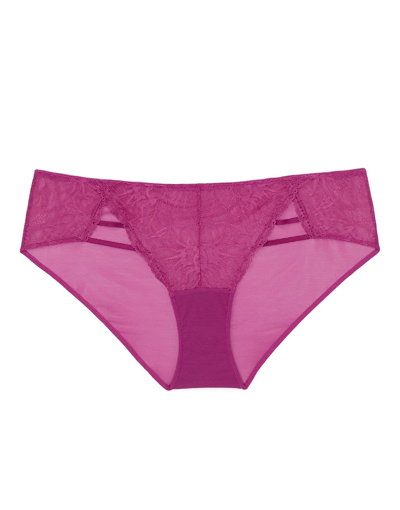 The Justina Hipster Dark Pink lace hipster is a bold-fashion statement for your lingerie drawer. Effortlessly chic, this style is crafted in striking lace as a Hipster Panty for a flattering silhouette. (Available in sizes XS-XL.)