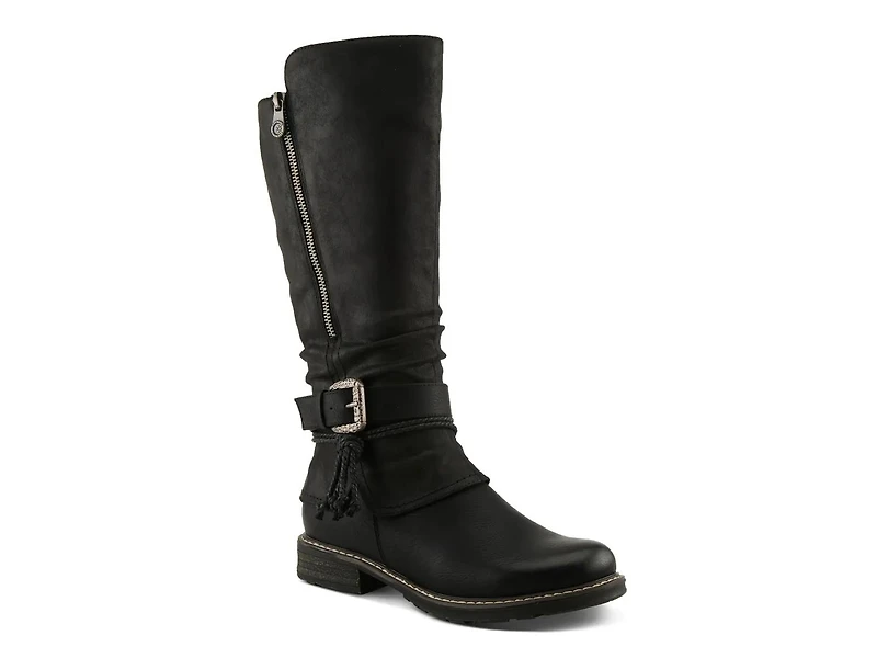 Channel rustic romance with the Patrizia Kabuta boot. This boot dons a slouchy extended-calf silhouette crafted with burnished faux leather for a lived-in, vintage feel. An adjustable buckle strap adds sculptural detail. The hooded shaft and faux fur lining wrap your legs in warmth, and the inside zipper makes slipping in and out effortless.