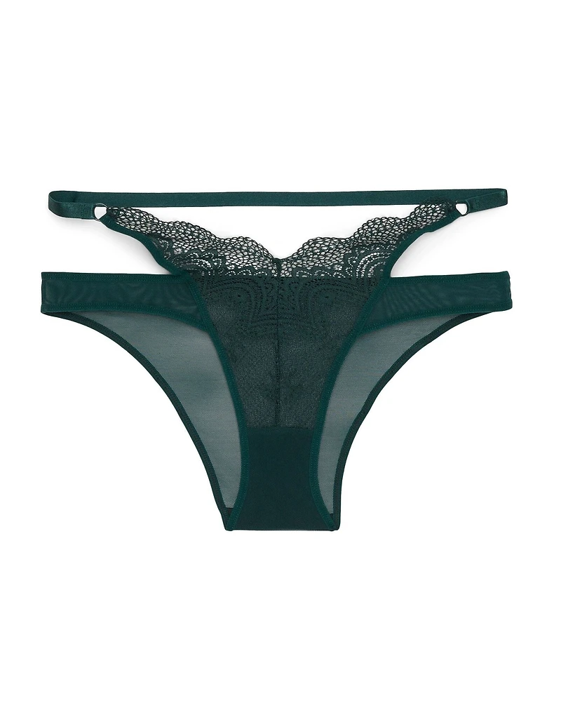 The Kaia Solo Cheeky Dark Green lace Cheeky is a bold-fashion statement piece. Effortlessly flirty and modern, it features a cheeky panty style for a daring edge. (Available in sizes XS-XL.)