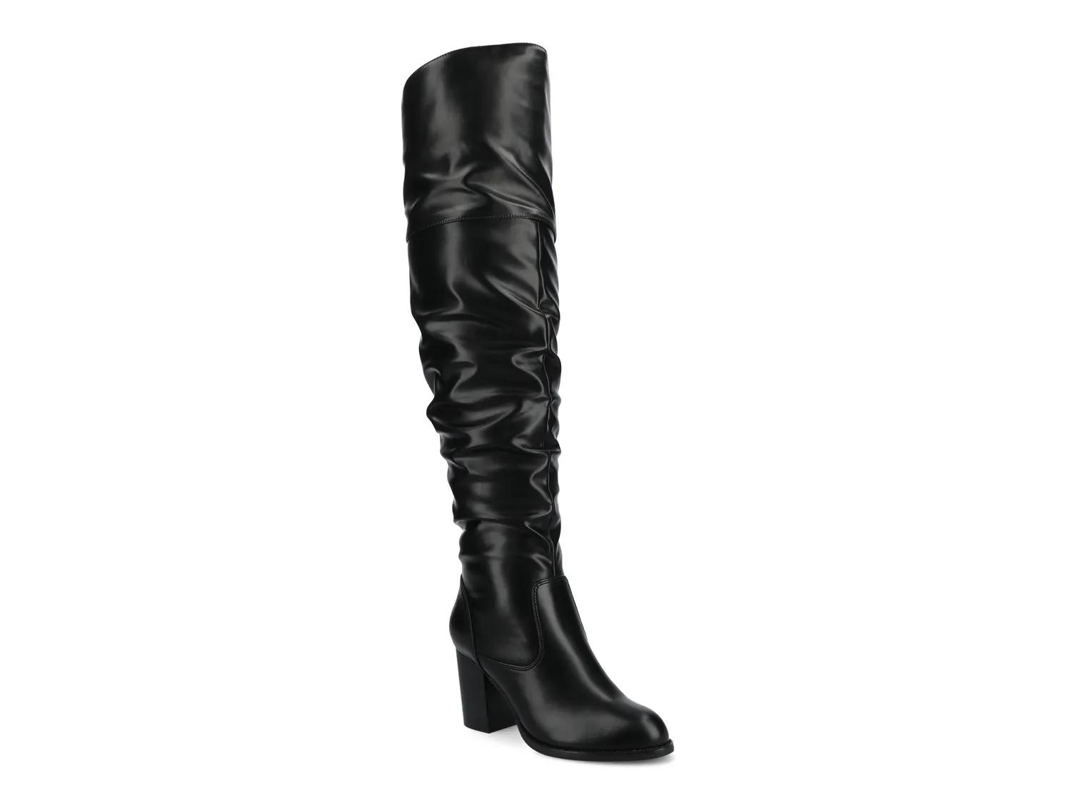 With a slouchy silhouette and a chic block heel, the Kaison wide calf over-the-knee boots from Journee Collection is a trendy thigh high boot that will give your style a fashionable lift.