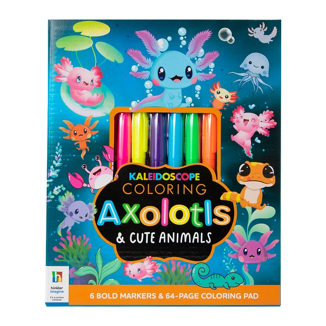 kaleidoscope axolotls & cute animals coloring book & markers kit